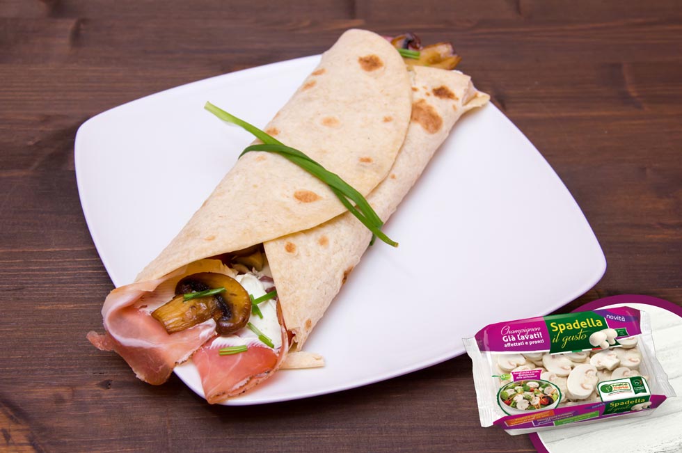 Nel frattempo in una ampia padella antiaderente fai scaldare una alla volta le piadine.